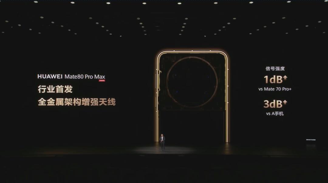 比方说这个地网, Mate 80 Pro Max 为了解决金属机身的信号问题,专门整了个全金属架构增强天线,信号不光没有弱化,比上代 Mate 70 Pro+ 的信号强度还要高上 1dB 。