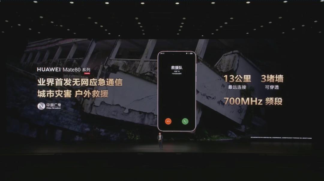 至于无网嘛,华为 Mate 80 除了有最远可覆盖 7 公里的无网通信,还专门和中国广电合作整了个无网应急通信。