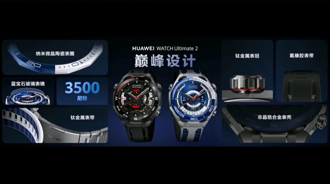 在手表这边,华为除了更新了 WATCH D2 的配色、升级了 WATCH 非凡大师非常尊的紫金款之外,还推出了最新的 WATCH Ultimate 2。