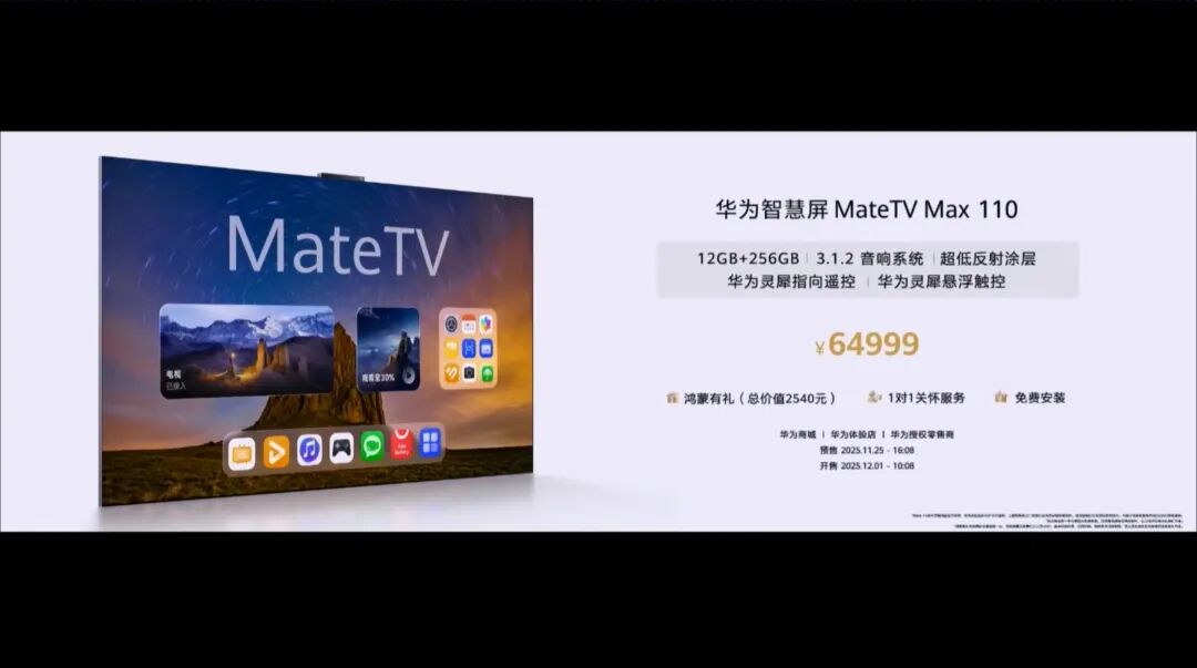 其中,MateTV这个产品线不知道大家还有没有印象,它的UI和整个操作逻辑都更像手机这种移动设备,是华为定位比较高端的电视系列。而这次的MateTV MAX 可以看做是之前 MateTV 的110寸超大屏版。
